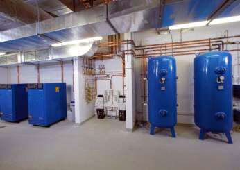 For compressed air supply in hospitals, Dräger offers space-saving, compact compressed air systems. All required components such as compressors, dryer and pressure reducer units are mounted as a single, compact unit onto a compressed air receiver. Completely fitted with piping and cables, the systems are quickly installed and ready to use.